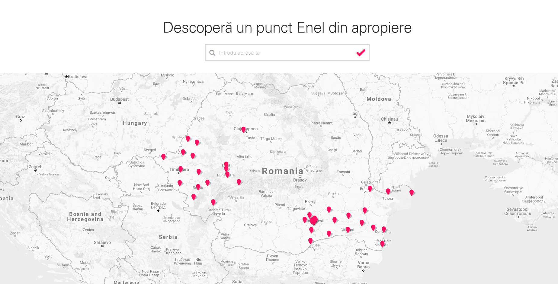 În secțiunea Contact, există și o zonă de search unde veți găsi cel mai apropiat punct Enel de locul unde vă aflați.